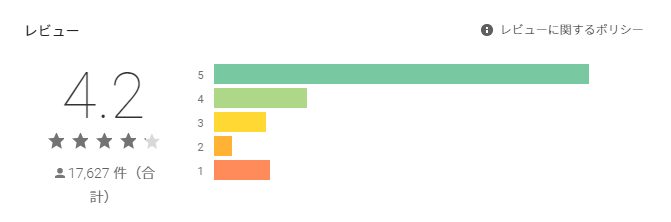 4点台のゲームアプリにしては、やや☆1個の割合が多いような気もしますが、やはり課金ゲーという部分に対して不満を持つユーザーが☆1つにしているみたいです。