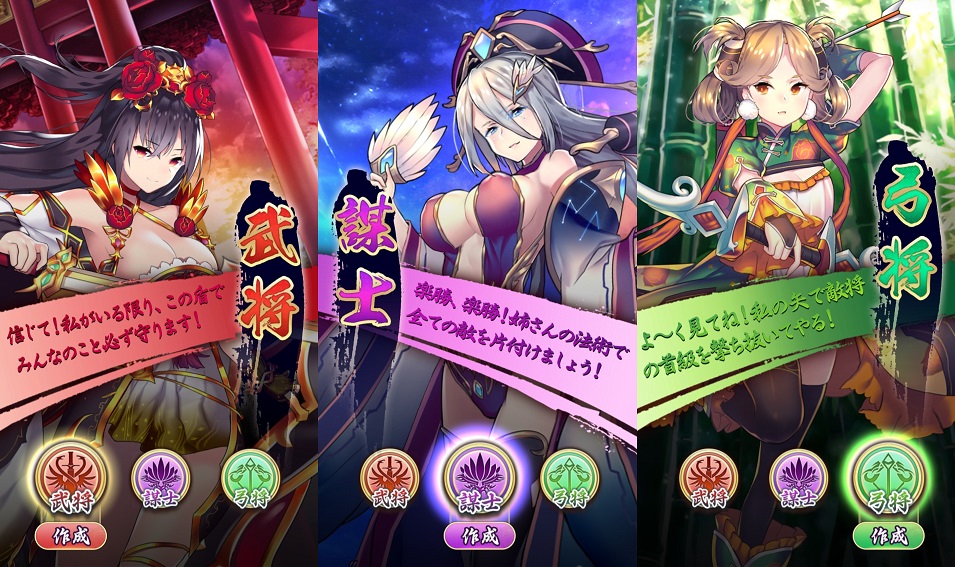 主人公のタイプは3パターン「武将/策士/弓将」から好きなものを選びます。