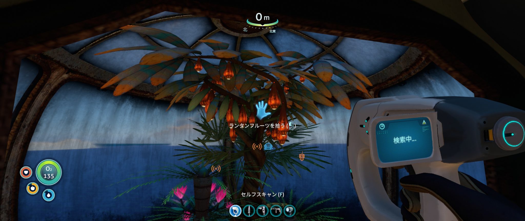 また、上記画像のランタンフルーツがある所(丘の上の建造物内)で展望室と屋内用プランターの現物をスキャンすることもできるので、忘れずにスキャンしておきましょう。