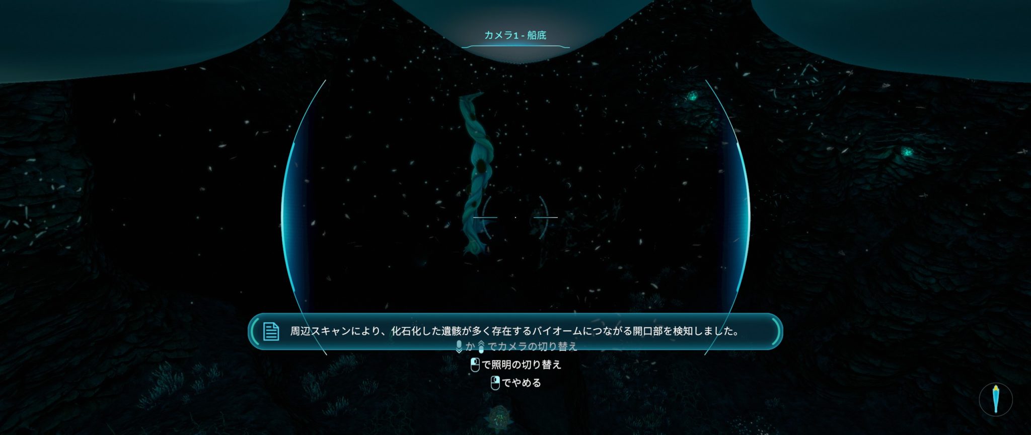 所々に明るい植物があるので、それを頼りに進んだり、なるべく低い位置を船底カメラを使って進むと、ライトの明かりが使いやすいです。