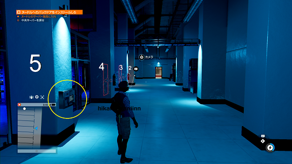 サーバー施設に進むには閉回路を解除しなければならないので、丸で囲んだ所にある閉回路を解除しに向かいます。