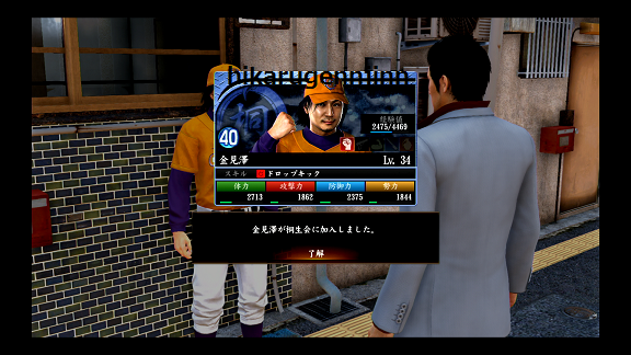 尾道と神室町を比較すると、神室町の方の「亜門軍団を倒せ!3」はステージチェンジもなくて割と簡単です。上記画像は2周目で用意した画像なので、これよりずっとレベルが低くても安定して勝てます。基本的な戦略としては・・・。